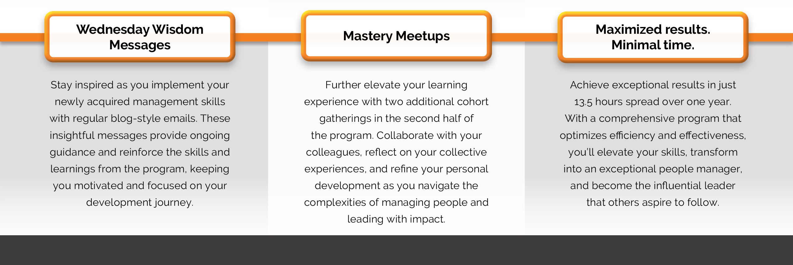 Building on the foundation laid during the Learning Labs, the cohort will reconvene in months 8 and 11 for immersive Mastery Meetup sessions. These 75-minute sessions provide a platform for participants to refine their newly acquired skills, seek guidance from peers, and continue their growth trajectory.